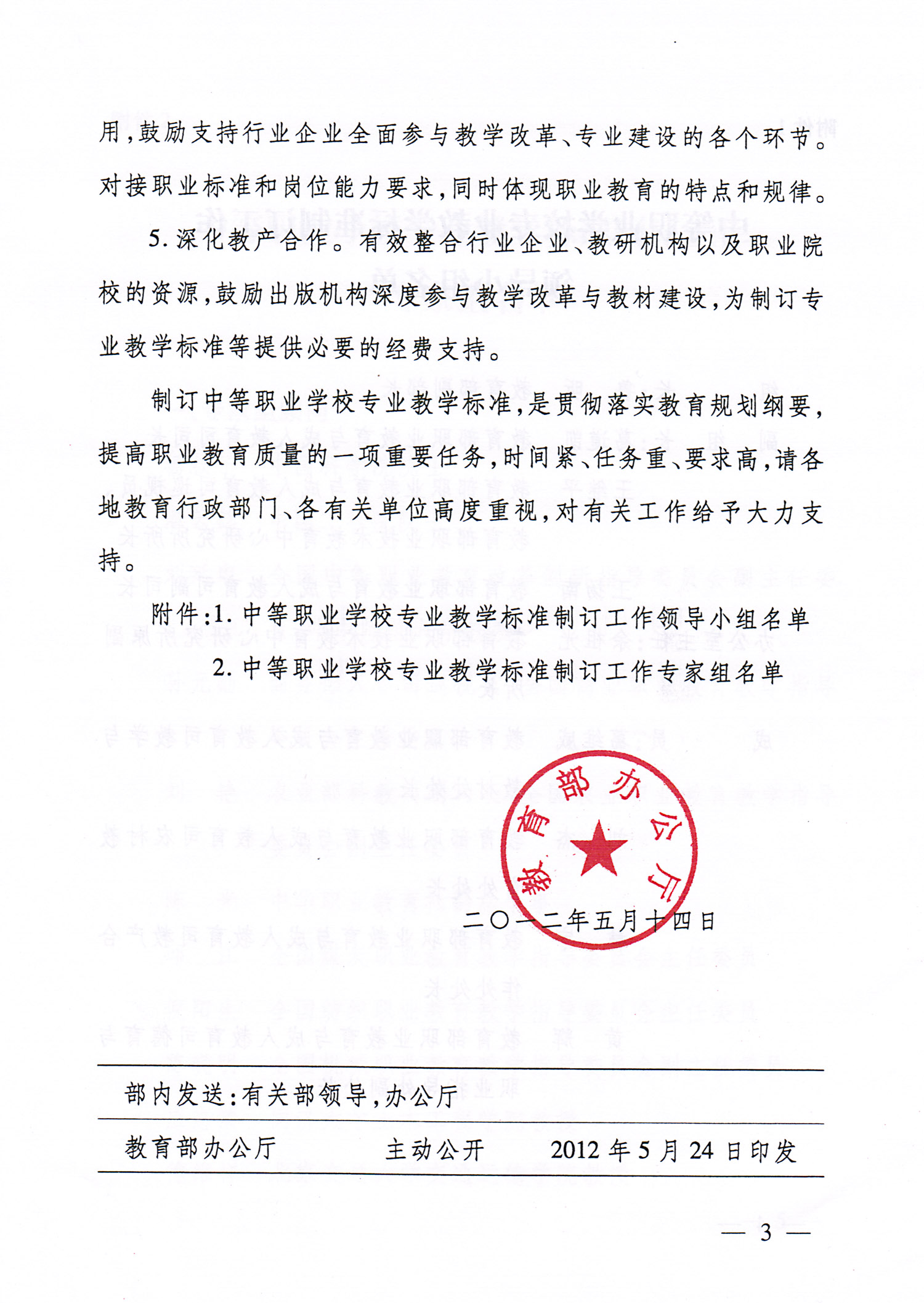 关于制订《中等职业学校专业教学标准》有关工作的通知