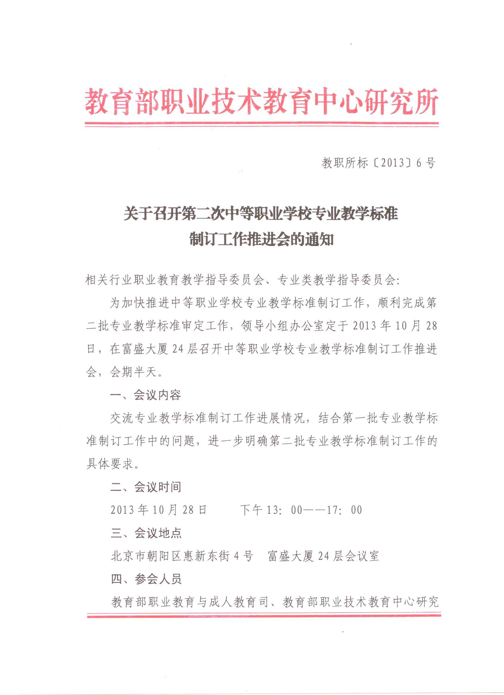 关于召开第二次中等职业学校专业教学标准制订工作推进会的通知
