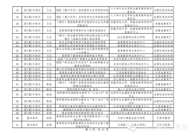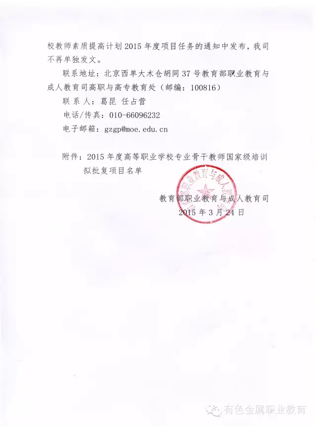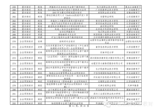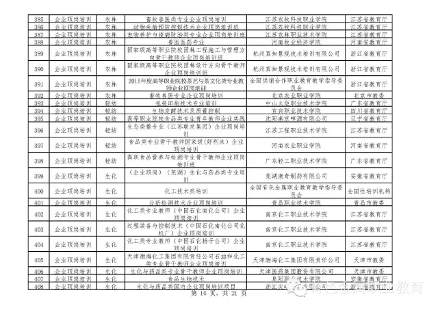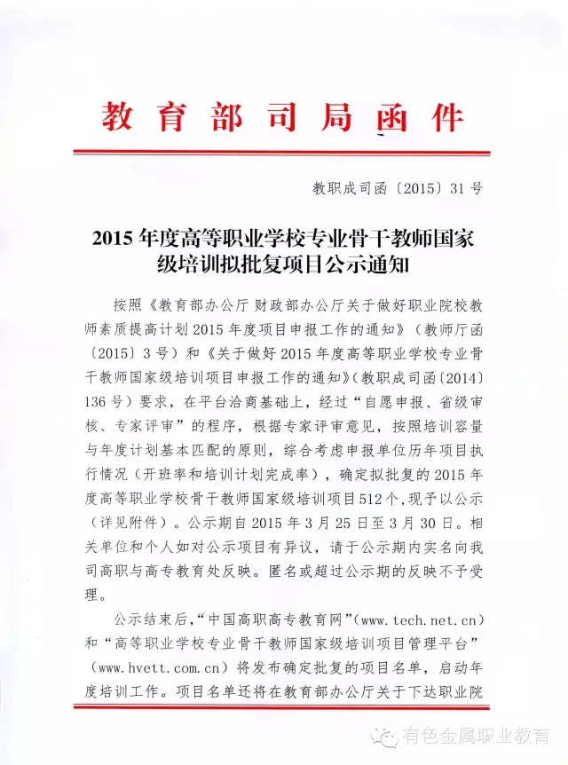 2015年度高等职业院校专业骨干教师国家级培训拟批复项目公示通知
