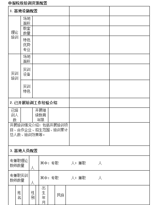 2. 《全国有色金属行业职工继续教育基地申请书》用于基地的申报和审核。