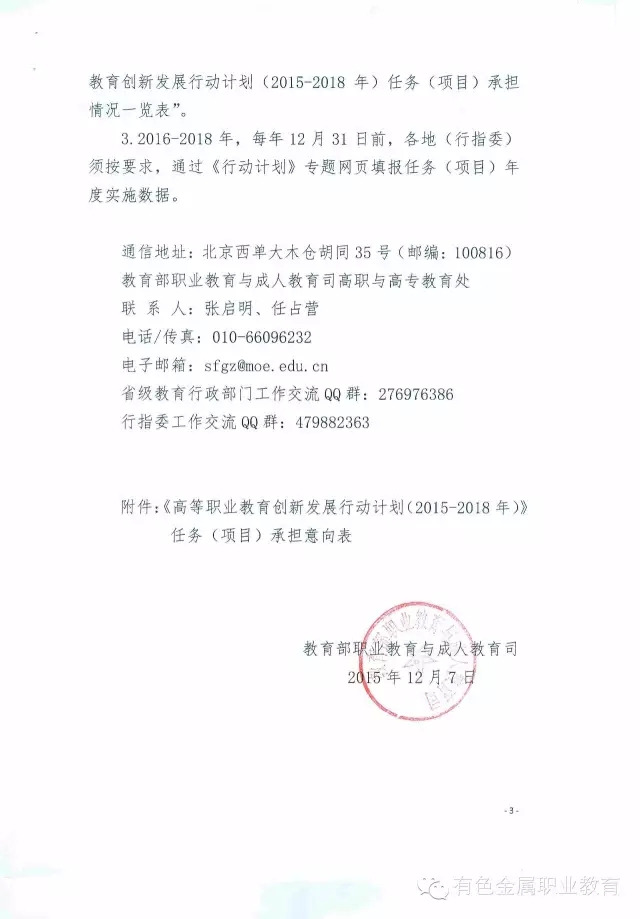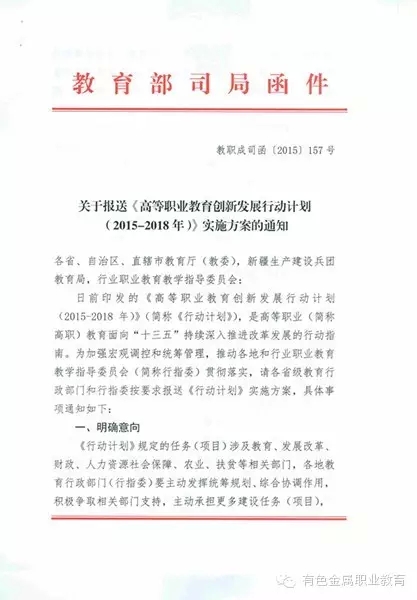 关于报送《高等职业教育创新发展行动计划(2015-2018年)》实施方案的通知