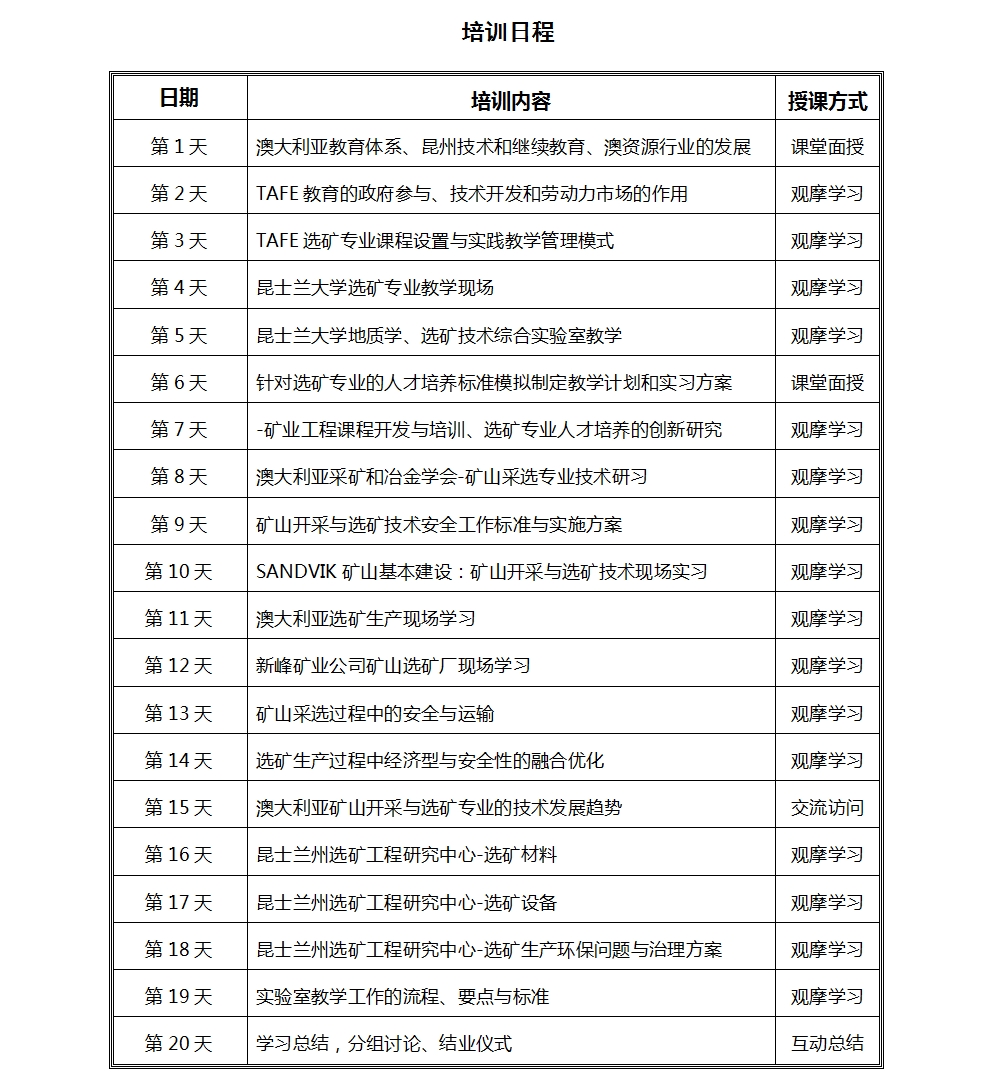 澳大利亚职业教育与矿业工程培训日程